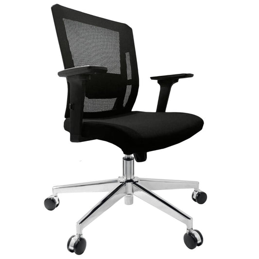 Silla de Oficina Operativa - NOGAL BEAT BLACK JACK CROMADO - Negro - Respaldo en Malla y Asiento Tapizado
